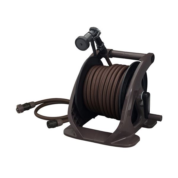 高い耐久性 頑丈 なブラウンカラーのホースリールセット ねじれに強いツイスターホースで、30mの散水を楽しもう 茶 高い耐久性 頑丈 なブラウンカラーのホースリールセット ねじれに強いツイスターホースで、30mの散水を楽しもう