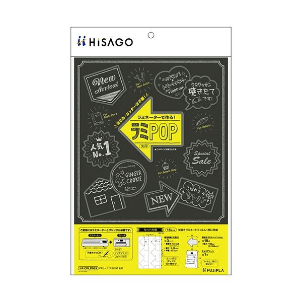 クリエイティブなPOPを手軽に作成 ラミネートフィルムで美しく仕上げる 矢印付きCPリーフで目立つ 18枚入りのパックでお得 5セットでたっぷり使える (まとめ) ヒサゴ フジプラ ラミネートフィルム CPリーフ ラミPOP 矢印 CPLP005 1パック(18枚) 【×5セット】