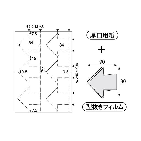 ●専用の厚口用紙に印刷して、フィルムに挟んでラミネートするだけでオリジナルの矢印型POPが簡単に作成できます。