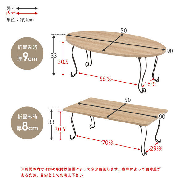 商品仕様: 折りたたみテーブル ローテーブル 角型 約幅90×奥行50×高さ33cm ブラウン 茶 折りたたみ式 折れ脚テーブル リビング