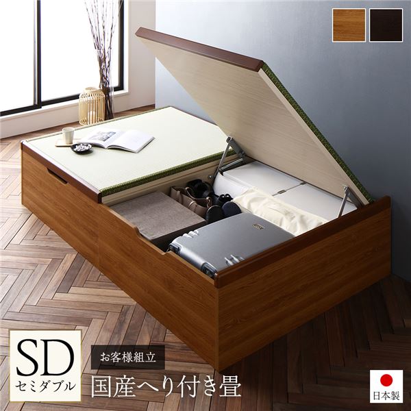 商品仕様: 〔お客様組立〕 跳ね上げ 畳 ベッド セミダブルベッド ライトオーク 日本製 国産 日本製 国産 ヘリ付き ヘッドレス 収納ベッド
