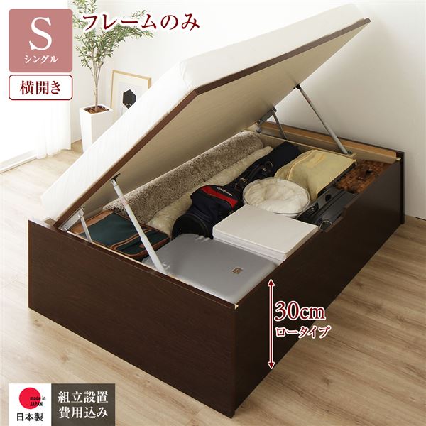 (キーワード: 安眠 健康 睡眠 快適 清潔 高級 流行 デザイン おしゃれ オシャレ 耐久 フレームのみ TCC602693 RDA0002810801 4666701 インテリア 寝具 ベッド ベッドフレーム 収納 フレーム シングルベッド 茶色 ブラウン 茶 単品 〔組立設置サービス付き〕 収納 ベッド 通常丈 跳ね上げ式 横開き 深さ30cm ロータイプ フレームのみ 茶 ダークブラウン こげ茶 ヘッドレス 日本製 国産 日本製 国産 跳ね上げ 開閉 省スペース 開く 整理 小さい 小型 軽量 省スペース 1人)