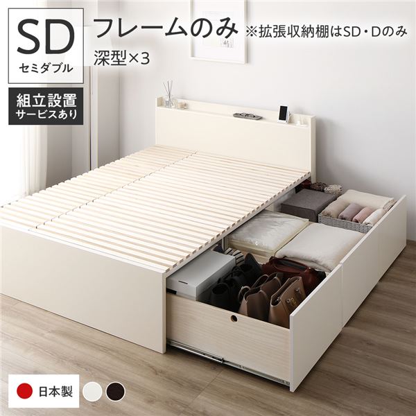 (キーワード: 安眠 健康 睡眠 快適 清潔 高級 流行 デザイン おしゃれ オシャレ 耐久 フレームのみ TCC600923 RDA0002810801 4275836 インテリア 寝具 ベッド ベッドフレーム 収納 フレーム セミダブルベッド 白 ホワイト 単品 〔組立設置付き〕 収納 ベッド フレームのみ 白 ホワイト AAA 引き出し 棚付き 宮付き 日本製 国産 宮付き 置き台 置台 置き場 置場 物置き 棚付き 枕元 台 小物 ヘッドボード 引出し 衣服 シーツカバー 収納 整理 季節 大きい 大型 2人 夫婦 ゆったり)