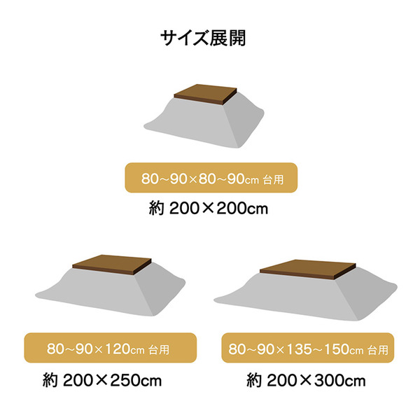80〜90×120cm幅のこたつ台に適応