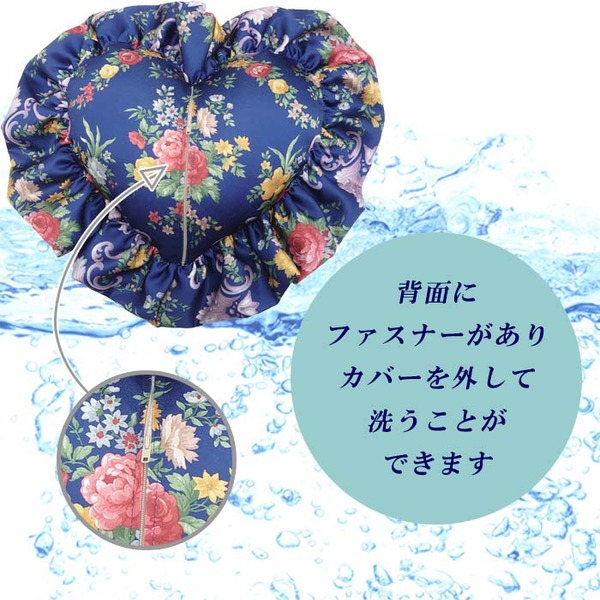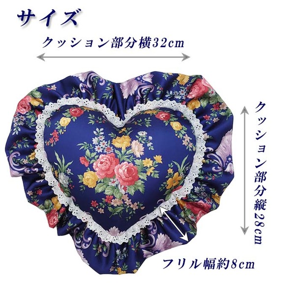 商品仕様: クッション ハート ダブルフリル 【ブルー 青 ローズガーデン】 中身付き 花柄 日本製 女性