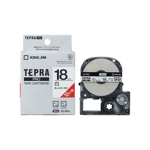 プロフェッショナルシリーズ専用テープカートリッジ 18mmのロングタイプで、白いラベルを提供するテープ キングジム(KING JIM) テプラPROテープ白ラベル 18mm ロングタイプ SS18KL