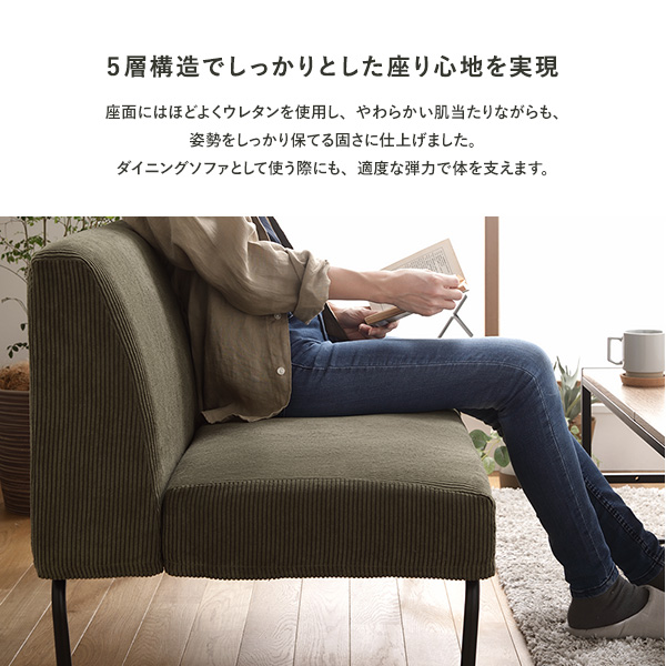 ダイニングソファとして使う際にも、適度な弾力で体を支えます。