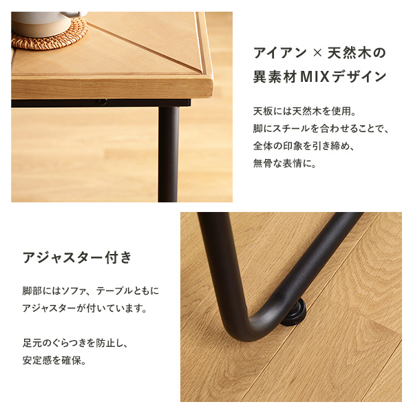 脚部にはソファ、テーブルともにアジャスターが付いています。