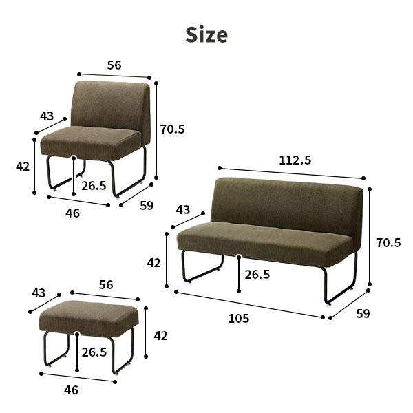 ※ベンチのみ奥行のサイズが異なるため連結不可となります。