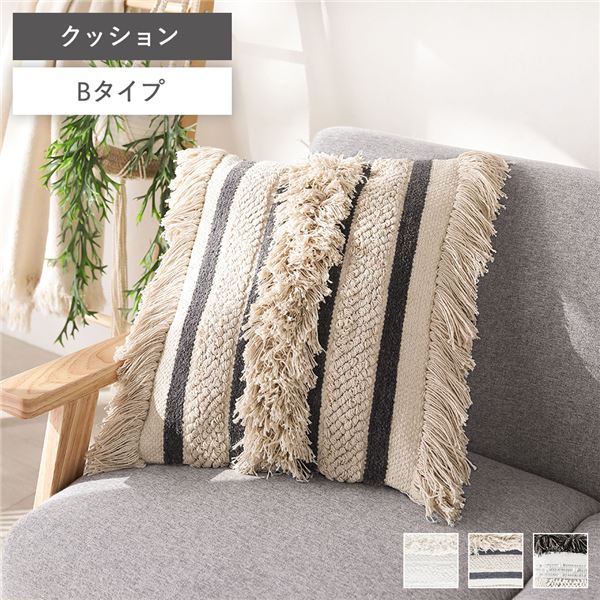 クッション 約幅45cm Bタイプ 正方形 インド製 天然素材 ナチュラル コットン 綿100% リビング ソファ インテリア雑貨 送料無料