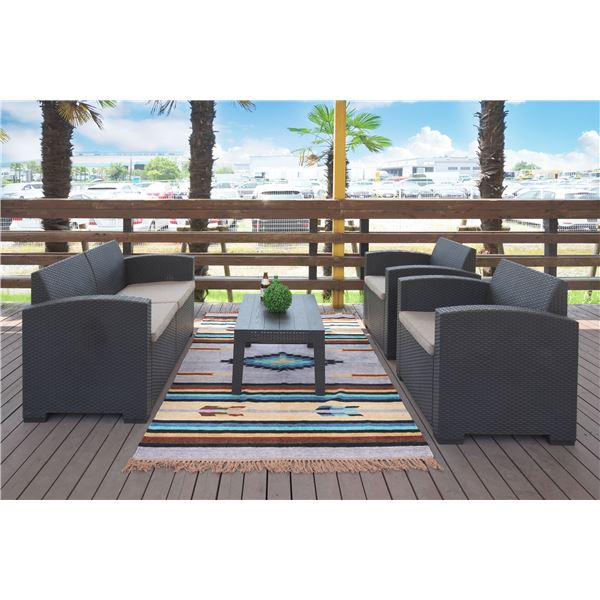 商品仕様: ガーデンリビング 4点セット テーブル×1 1人掛けソファ×2 2人掛けソファ×1 ダークグレー 灰色 お客様組立品 バルコニー ウッドデッキ