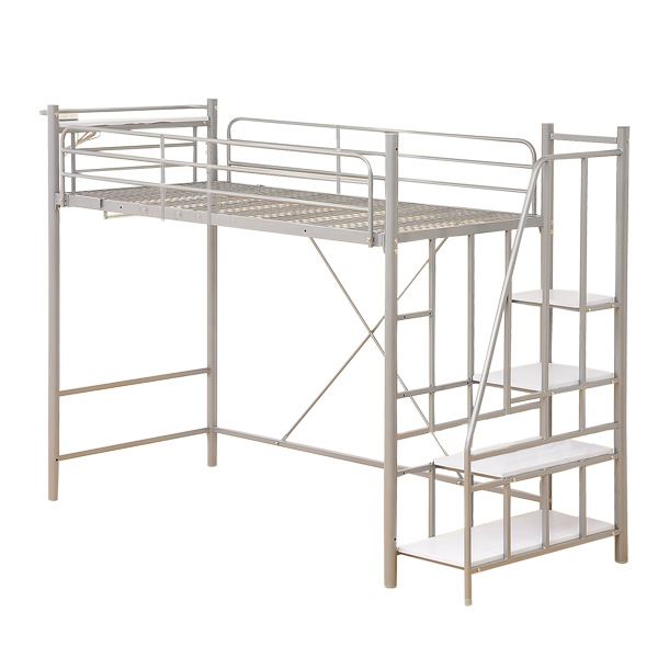 シングルベッド ロフト ベッド 約幅255cm シルバー 階段付き ベッドフレーム 大人かわいいインテリア お客様組立品 ベッドルーム シングルベッド ロフト ベッド 約幅255cm シルバー 階段付き ベッドフレーム 大人かわいいインテリア お客様組立品 ベッドルーム