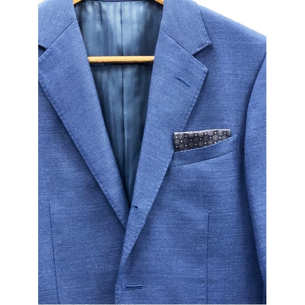 (キーワード: TCC273880 RDA0004251919 4291754 レディースファッション レディースファッション 素材の魅力を極める 日本の伝統を纏う、進化したポケットチーフ 深みあるダークネイビーと小紋の織りが融合し、形態安定性を追求 洗練されたトラッドスタイルを演出する一枚)