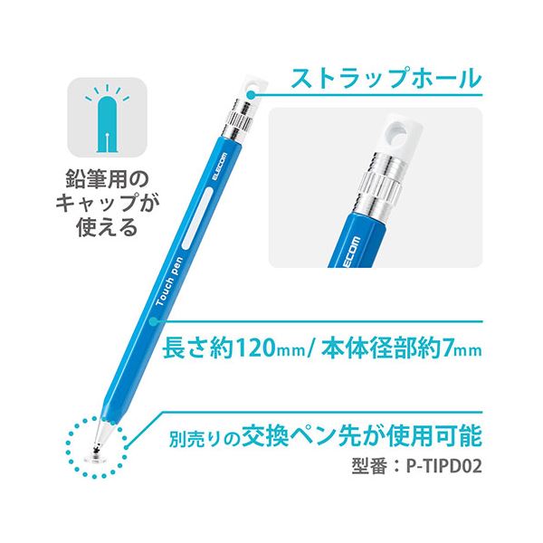 商品仕様: エレコム 6角鉛筆タッチペン ブルー 青 P-TPENDEBU
