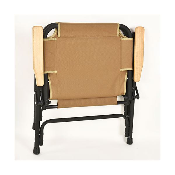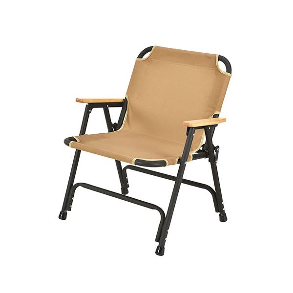 耐荷重120kgの丈夫なつくりでゆったり座れる。ひじ掛け部分は、手触りの良い天然木を使用。折りたたみ可能なので持ち運びに便利。
