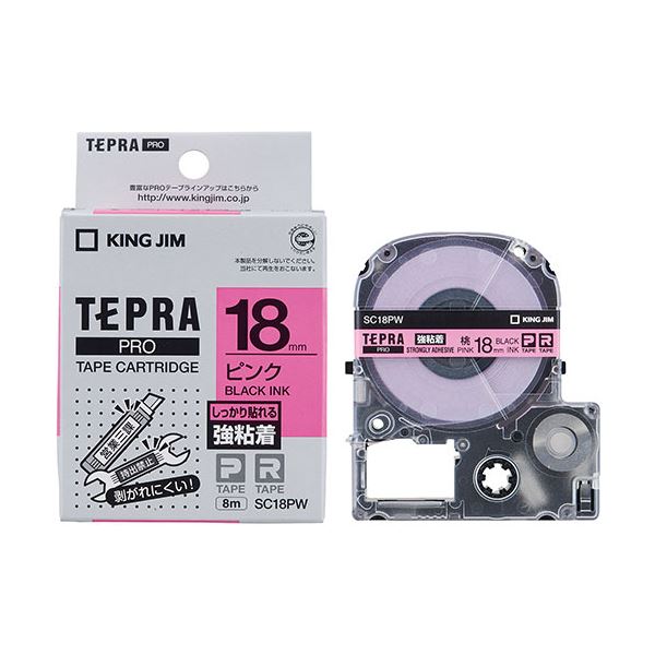 KING JIM(キングジム) テプラPROテープ強粘着 18mm ピンク KJ-SC18PW 強力な粘着力で、テプラPROシリーズにぴったり 18mmのピンクテープカートリッジ