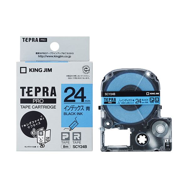 プロフェッショナルシリーズ専用テープカートリッジ、KJ-SCY24B 鮮やかな青と黒の文字で目立つ、テプラPROテープの進化形 効率的な整理整頓をサポートする、インデックスラベル 高品質なテープで仕事の効率をアップさせよう KING JIM(キングジム) テプラPROテープ インデックスラベル 青/黒文字 KJ-SCY24B