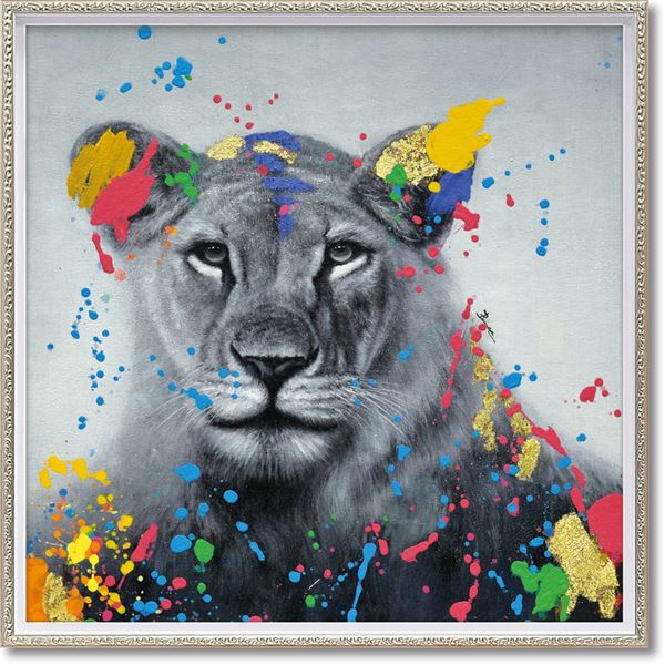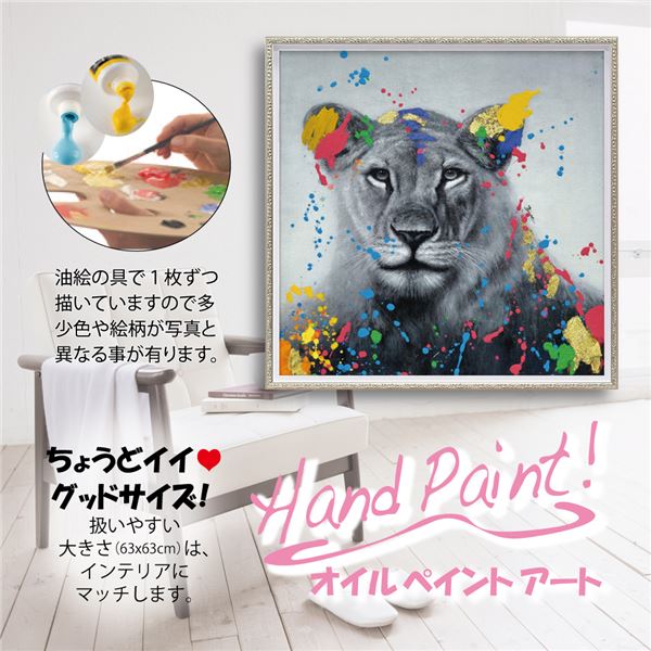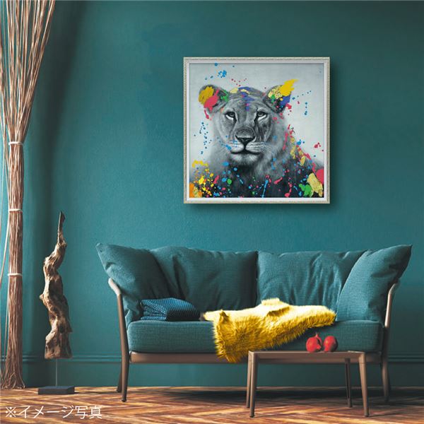 ●贅沢に絵の具を盛り上げたり、ユニークな素材を使用したり、100%ハンドペイントならではの手の込んだ仕上がり。カラフルモダンの絵が楽しいインテリアを演出します。