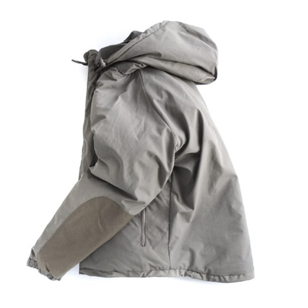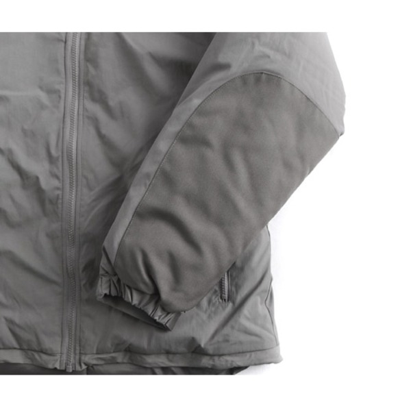 1980年代より導入されたアメリカ軍の寒冷地用被服システムは、2000年代には第3世代となり、LEVEL 1からLEVEL 7まで7段階(種類)の被服を組合せます。GEN 3 LEVEL 7 ジャケットは、陸軍では"マシュマロスーツ"、海兵隊では"パッピースーツ"とも呼称されます。LEVEL 7はECWCSの最終レイヤーで、インナーの組み合わせによりマイナス46度の環境に対応できます。戦闘時に着用するのではなく、前線基地などで待機時の使用を目的としており、ポケットはハンドウオーマーを兼ねた2カ所のみになっています。
