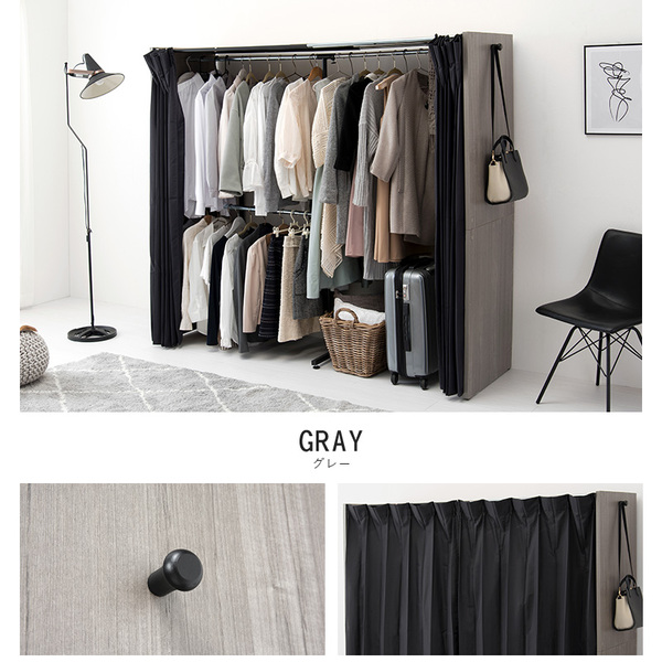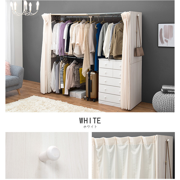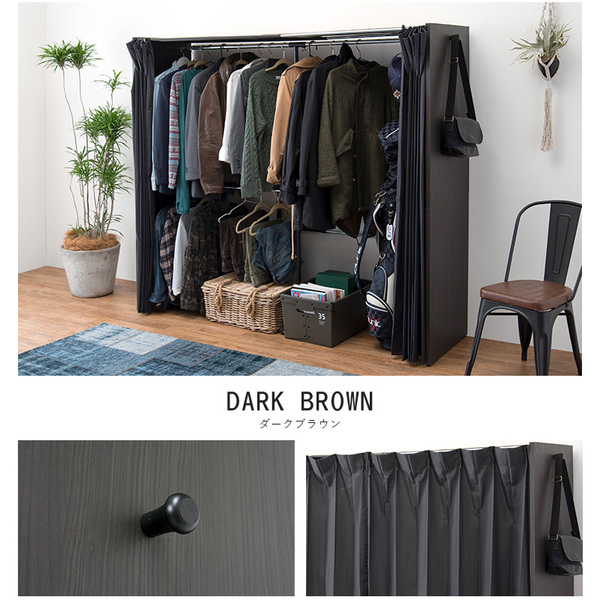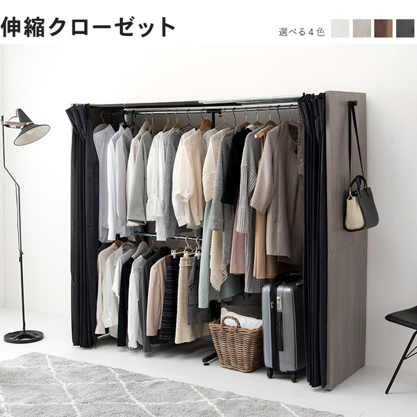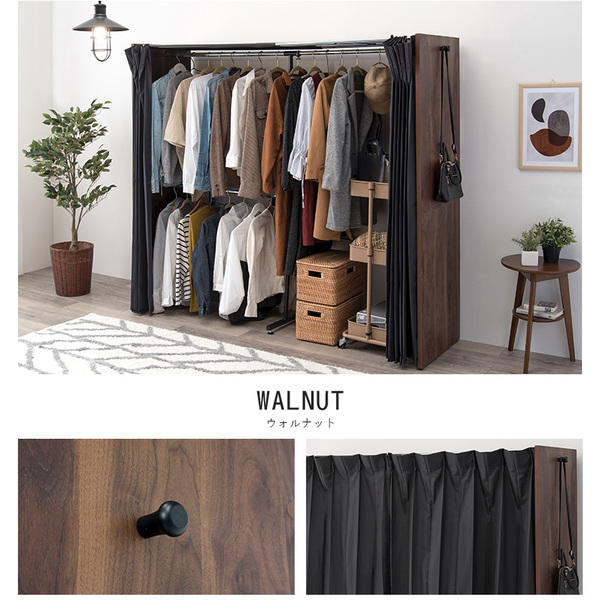 ハンガーラック 約幅118〜195×奥行55×高さ170cm ウォルナット 伸縮 クローゼット タンス 整理 収納 洋服ダンス ハンガー カーテン付 お客様組立品 寝室 送料無料