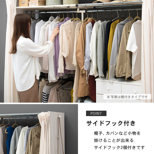 スペースに合わせて伸縮可能なクローゼットハンガー。カーテン付き。