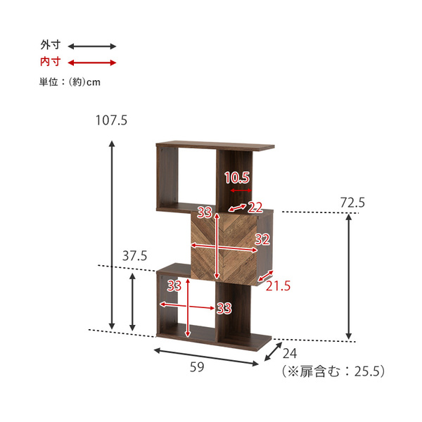 幅59×奥行25.5×高さ107.5cm