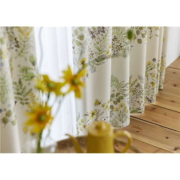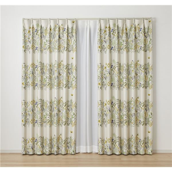 商品仕様: 遮光 カーテン 約幅100×丈200cm ミチクサ ベージュ 1枚入 2級遮光 タッセル付 形状記憶加工 日本製 デザインライフ