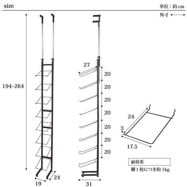 ■商品サイズ(約):シングルタイプ W19.5×D31×H194〜264cm