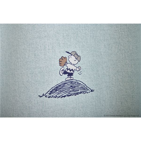 PEANUTSのコミックでは野球をするシーンが多く描かれおり、PEANUTSを代表するシーンの一つです。チャーリー・ブラウンが監督兼ピッチャーを務める野球チームは、試合ではいつも負けてばかり。シュローダーはキャッチャー。ショートはなんとスヌーピー。ライトのルーシーはボールを無視します。一見、キャラクターがランダムに配置されているように見えますが、よく見るとコミックのポジション通りにキャラクターが配置された、ファンにはたまらない遊び心のあるデザインです。