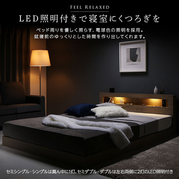 ・LED照明付き(セミシングル・シングル×真ん中に1灯、セミダブル・ダブル・クイーン×左右両側に各1灯(計2灯))
