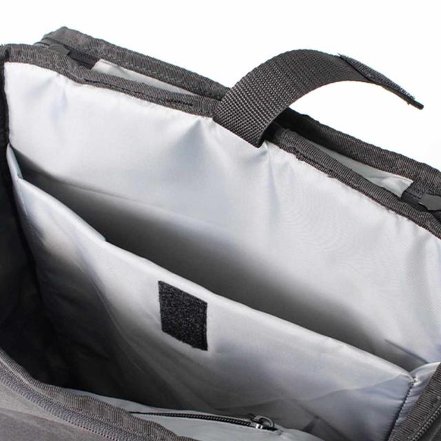 内側には、ジッパーポケットとタブレットやラップトップPCなどを保護しながら収納するためのパッド付ポケットが付いています。荷物を分けて収納することで出し入れがスムーズにできます。