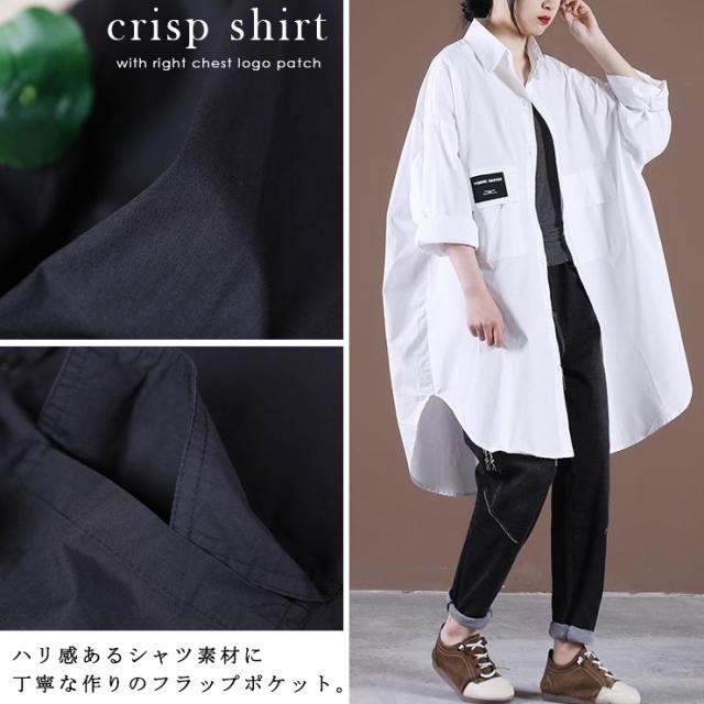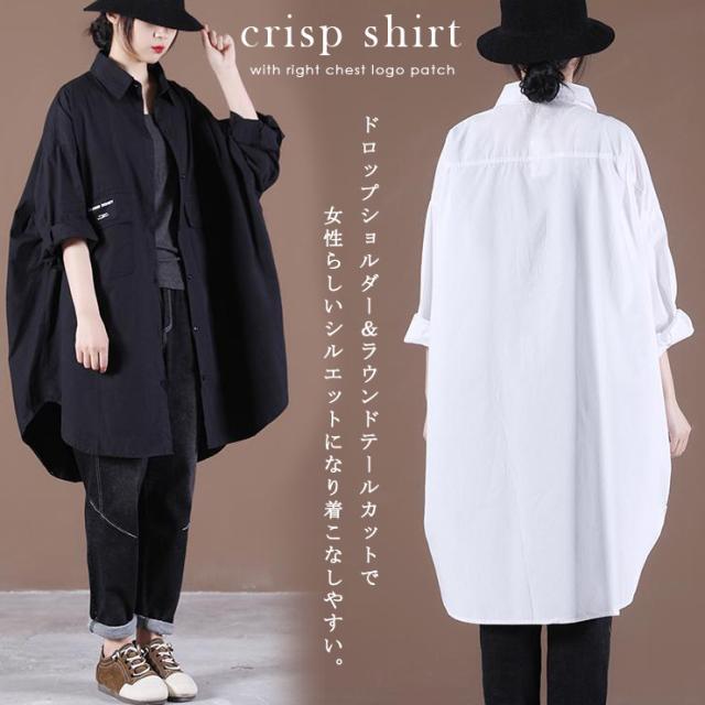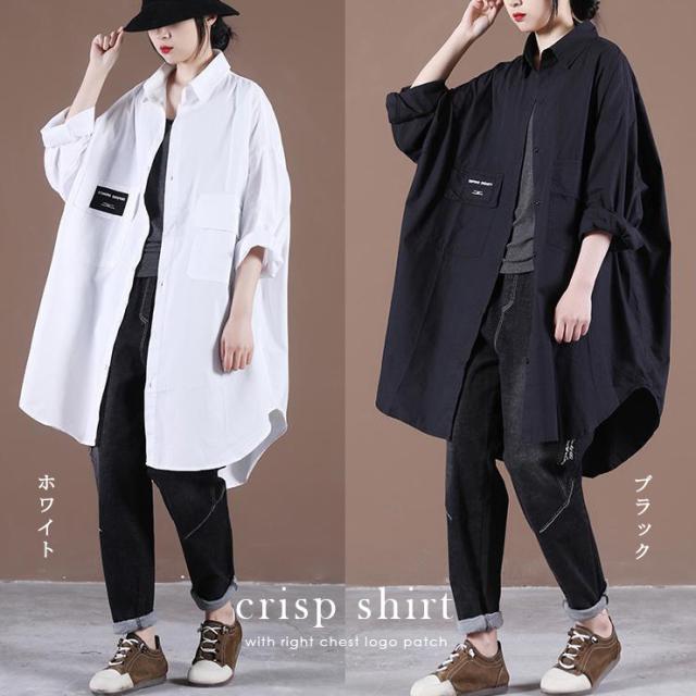 大きいサイズ レディース オーバーシャツ 長袖 オーバーサイズ 白黒 ロゴ 春夏 秋 (1019952)