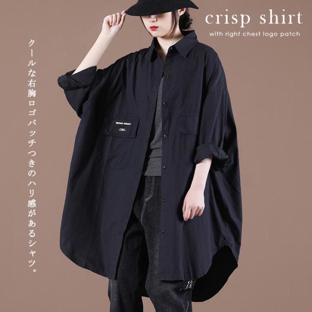 大きいサイズの服 ロゴパッチつきのストリートワイドシャツ