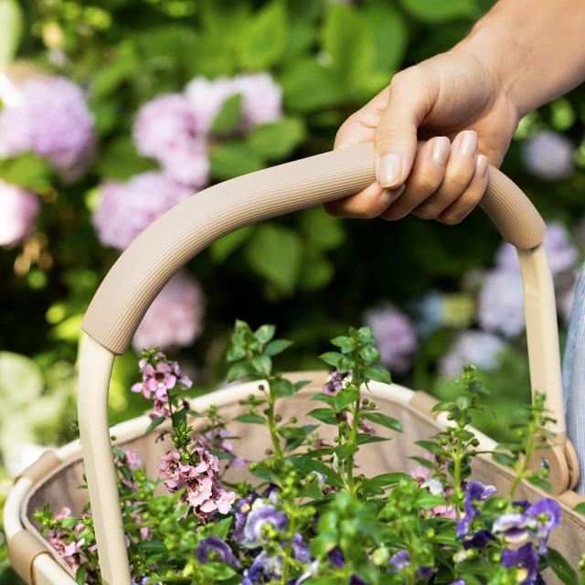 丈夫で運びやすいショッピングバッグです。雑誌や大きなボトルも入る大容量サイズで、お買い物時のマイバスケットやランドリーバッグ、車内用、ペットのお出かけ用、アウトドアなど多用途で活躍します。