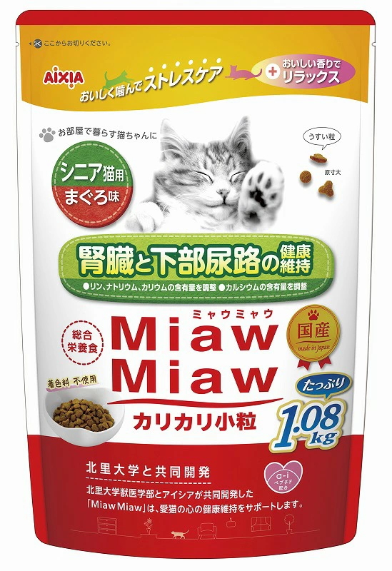 アイシア ミャウミャウ カリカリ小粒 シニア猫用まぐろ味 1.08kgx6個(ケース販売)