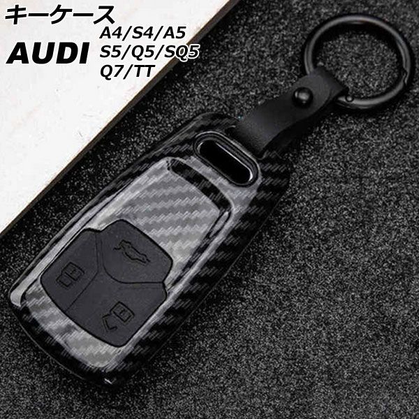 キーケース アウディ Q5 FYDAXS/FYDAXA/FYDETS/FYDETA/FYDTPS/FYDTPA/FYDGKS/FYDGKA 2017年10月〜 ブラックカーボン 3ボタン ABS+シリコン製 AP-AS805-BKC