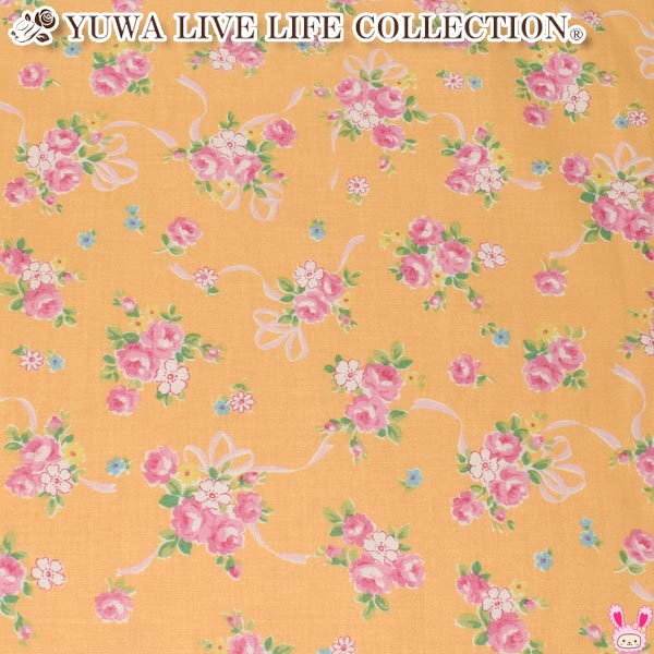 YUWA有輪商店 リボンと薔薇の花束 Cオレンジ系 10cm単位 切り売り シャーティング生地 AT826761 (234) [在庫限り]