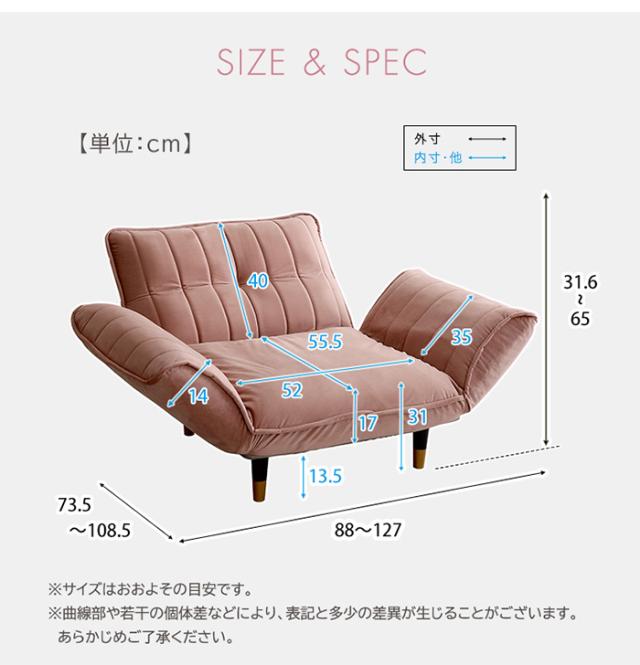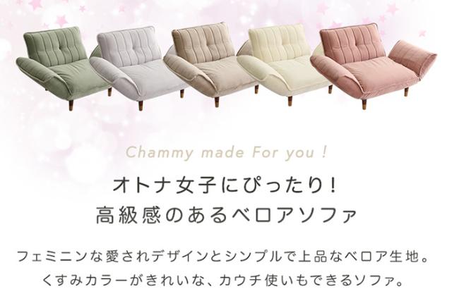 ソファ ベロアカウチソファ 1人掛け Chammy チャミー SH-07-OKBA1P--PKBK 日本製 一人用 ベロア生地 コンパクト おしゃれ リクライニング カラーバリエーション