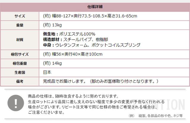 商品サイズ:W88-127×D73.5-108.5×H31.6-65cm