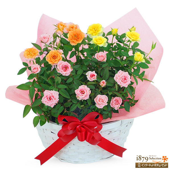 【母の日 産直花鉢植え】 女性 母 祖母 誕生日 お祝い 記念日 プレゼント 花キューピットの母の日 バラの鉢植え 3色寄せ植え(ピンク・黄色・オレンジ) mt04-711584