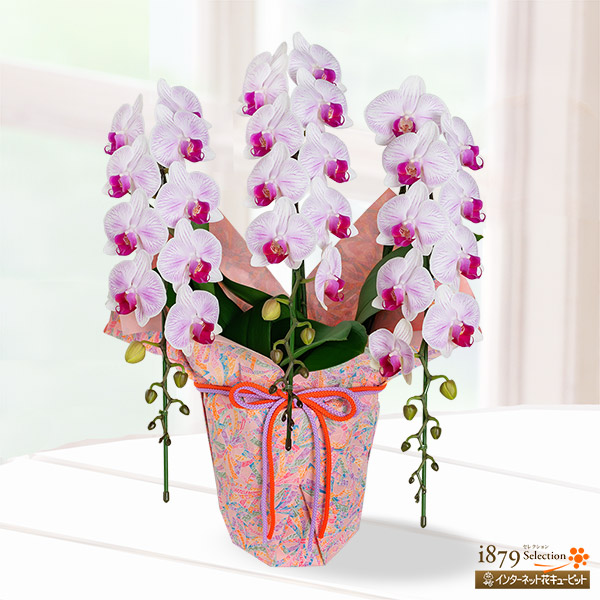 【母の日 産直花鉢植え】 女性 母 祖母 誕生日 お祝い 記念日 プレゼント 花キューピットの母の日 ミディ胡蝶蘭 ストライプ 3本立(千代紙ラッピング) mt04-711587