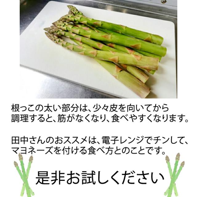 - 昨年からのリピートです。今年も…訳ありなので、当然サイズの不揃いや曲がったものもありますが、新鮮で甘みのある美味しいアスパラでした。