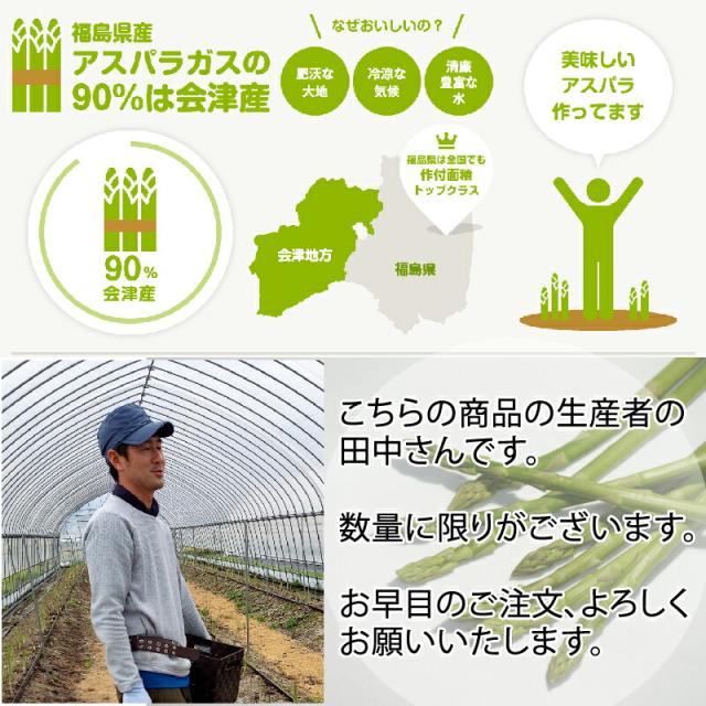 ・当商品は福島県喜多方産の会津アスパラガスです。産地より直送のため、他商品との同梱は不可となります。