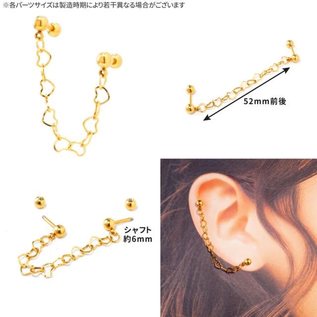ゴールド ハート チェーン ストレートバーベル 18G サージカルステンレス ヘリックス 軟骨ピアス ボディピアス 鎖 Pierce