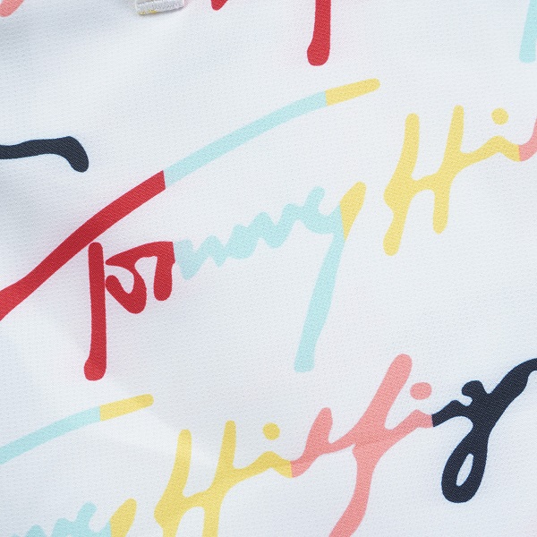 筆記体ロゴのモノグラムプリントがトミーらしいデザイン。フラッグモチーフの片玉ポケットもポイントです。