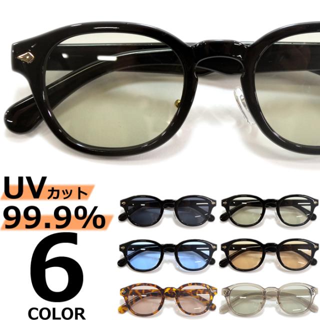 サングラス 伊達メガネ メンズ レディース ウエリントン ボストン ラウンド 丸メガネ ボスリントン ライトカラーレンズ 薄い色 ブラック スモーク グレー ブルー ブラウン デミ 全6色