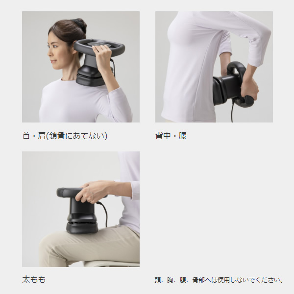 ハンドル形のグリップで、振動パッドを強く押しあててマッサージできます。