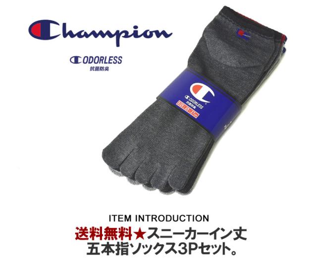 Champion チャンピオン 5本指ソックス 3足セット メンズ 靴下 ショート丈 ソックス CMSCX301 正規品【Z0J】【パケ2】