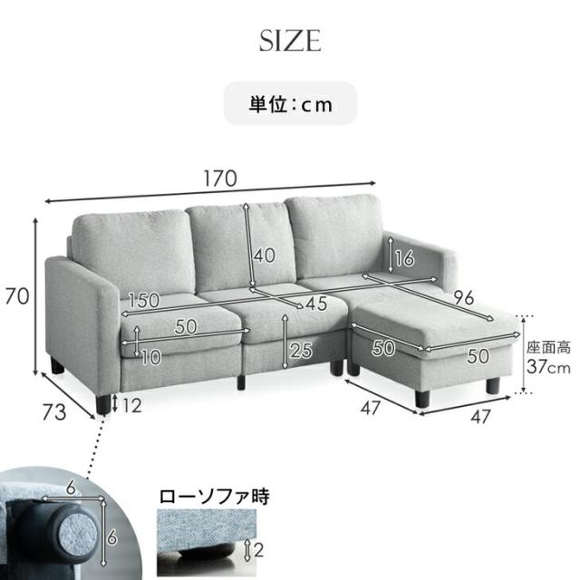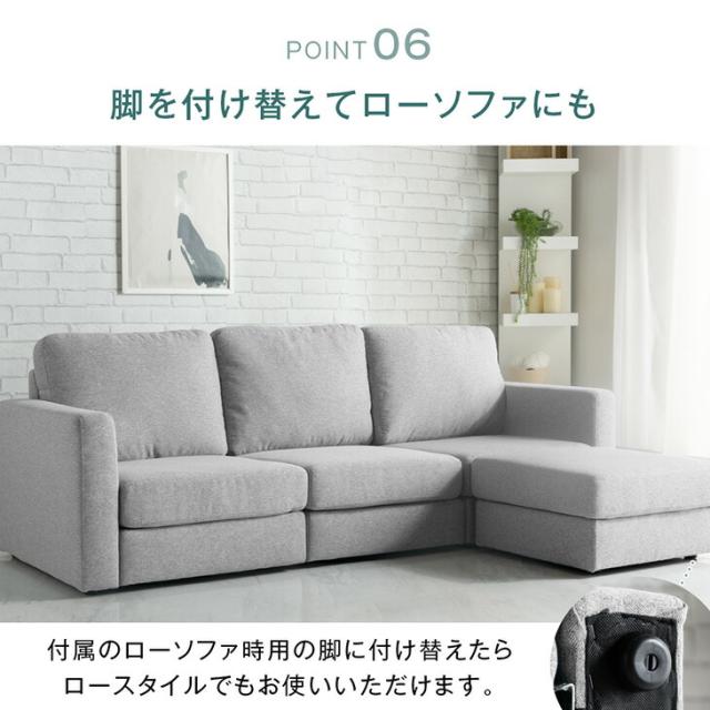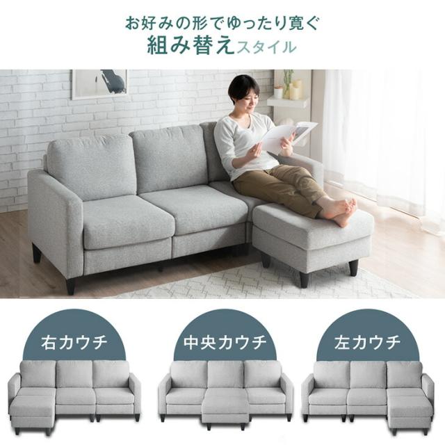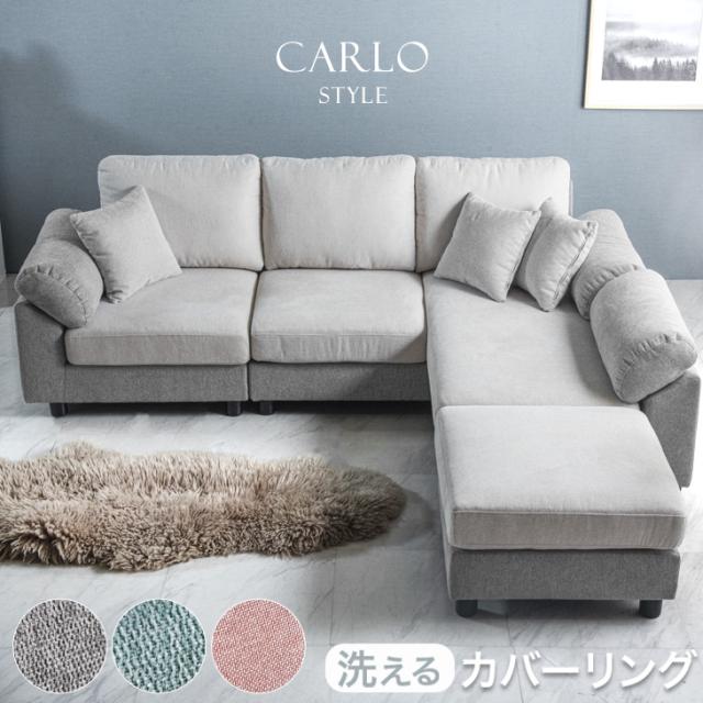 ソファ 3人掛け 洗える カバーリング カウチソファ オットマン カウチソファー 3Pソファ コーナー 3人掛けソファ カバーリングソファ 脚 取り外し ファブリック グレー ブルー ベージュ【商品番号:42500023】