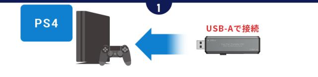 PS4本体のType-Aポートに製品をUSB接続して、(設定)>[周辺機器]>[USBストレージ機器]からフォーマットする機器を選び、[拡張ストレージとしてフォーマットする]を選び拡張フォーマットを実施します。
